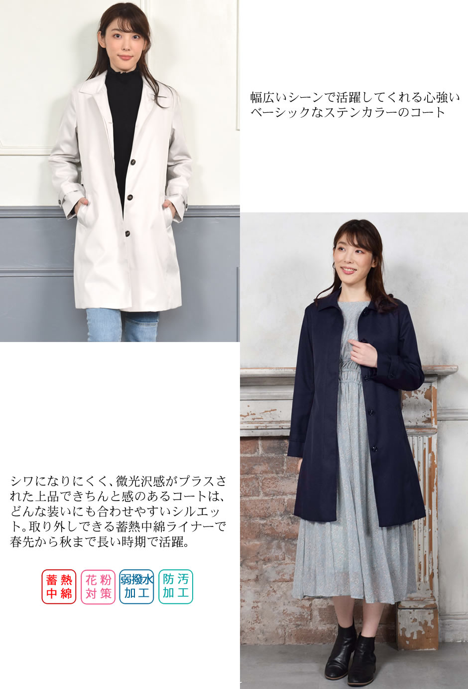 Merfirge蓄熱ライナー付ステンカラーコート 90cm丈 【花粉対策・弱撥水加工】