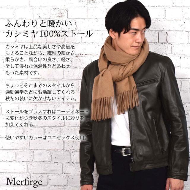 高い品質を誇る内モンゴル産カシミヤは、特有のヌメリのある触れ心地、深みと鮮やな色合いも格別です。上品な美しさや高級感もさることながら、繊維の細かさ、柔らかさ、風合いの良さ、軽さ、そして優れた保温性などをあわもった素材です。ふんわりと暖かく、いろんなアレンジで冬中活躍してくれる。フォーマルにも、仕事にも、カジュアルにもシンプルで使い勝手の良いストールです。高級素材の「カシミヤ」を贅沢にも日常に取り入れ、とろけるような肌触りと暖かさを実感。ベーシックなデザインで自分用としてもプレゼントとしても喜ばれ、年代性別問わず、長くご愛用いただけます。