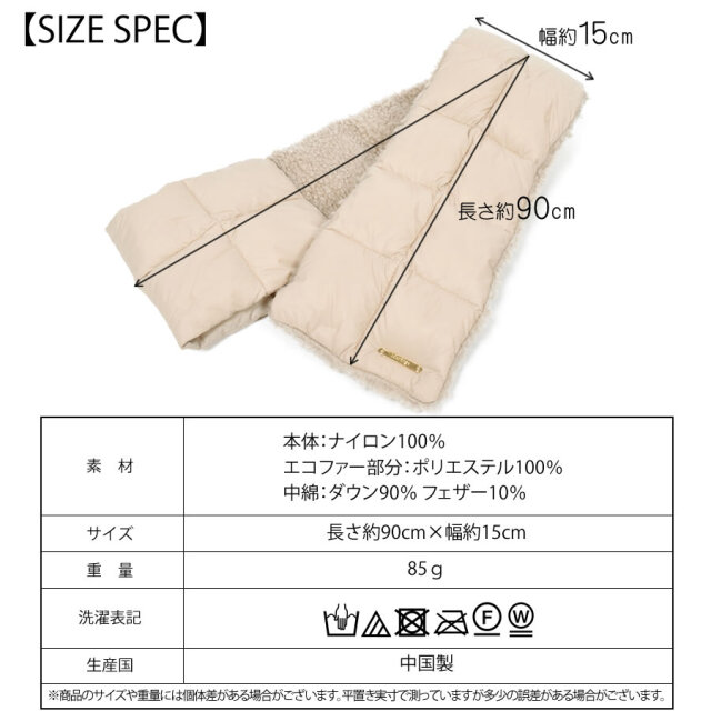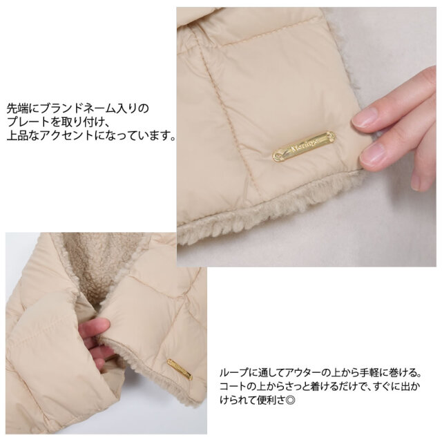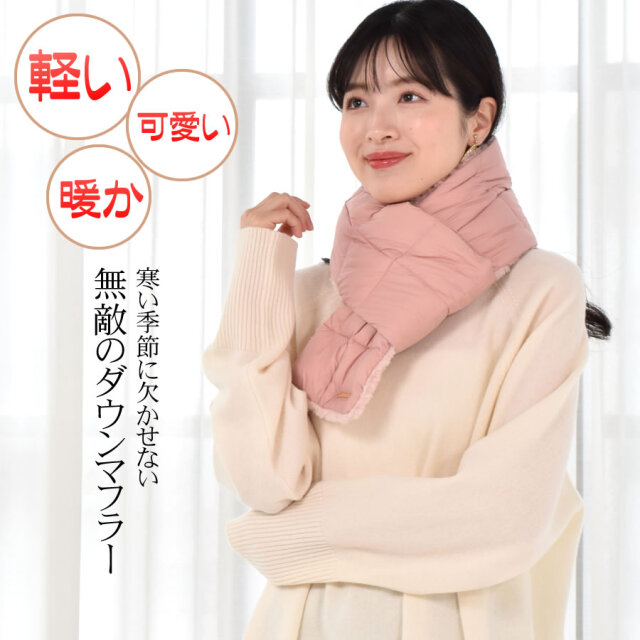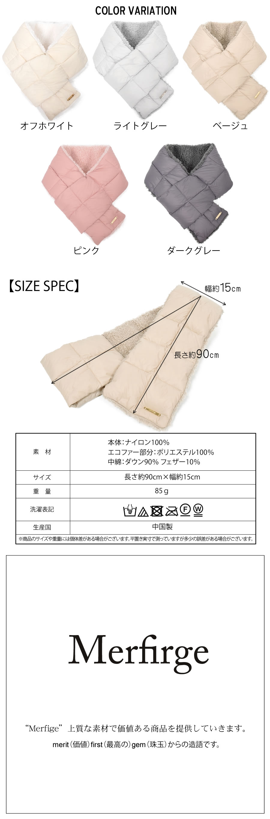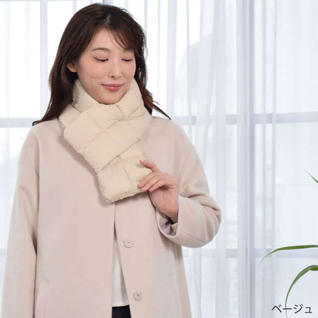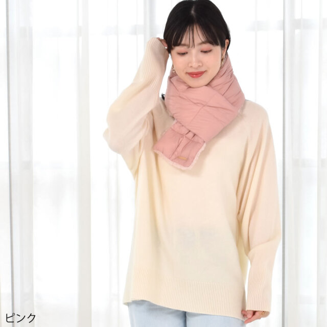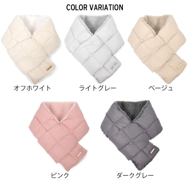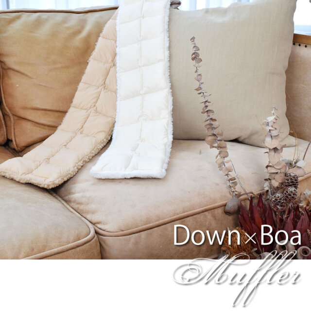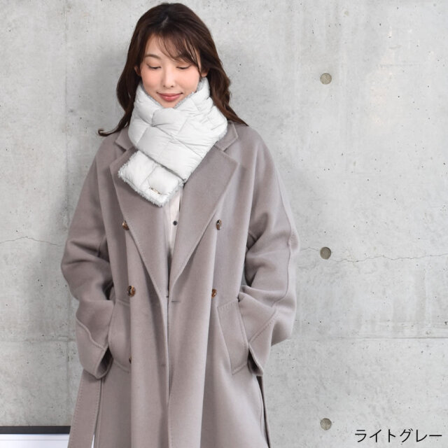 ダウンの軽さ、エコファーボアのふわふわな毛並みが心地良く暖かいリバーシブルマフラー。コンパクトで軽くて暖かいマフラーは、寒い季節にもファッションアイテムでも大活躍してくれる優れモノ。ベーシックなデザインと使えるカラーで防寒対策としてもファッションアイテムとしてもこれからの季節に大活躍。両面使いができるのでこれひとつ持っていれば、気軽にサッと巻けて便利。コーディネートやシーンを選ばず、毎日使いたいと思える優秀アイテムです。