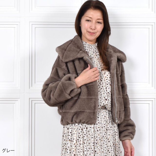 ふわふわとした優しくきれいな毛足とカジュアルなリブのバランスが抜群のエコファーブルゾン。本物見えする上品なエコミンクファーはなめらかで柔軟性のある心地よい肌触りです。こなれ感のあるニュアンスカラーで顔周りが華やかに明るく見えるのも嬉しいポイント。コンパクトな着丈でバランスが取りやすく、スカートやパンツとも相性抜群です◎。きれいめにもカジュアルにも着られるリッチで上品なムードを高めてくれるエコファーブルゾンです。