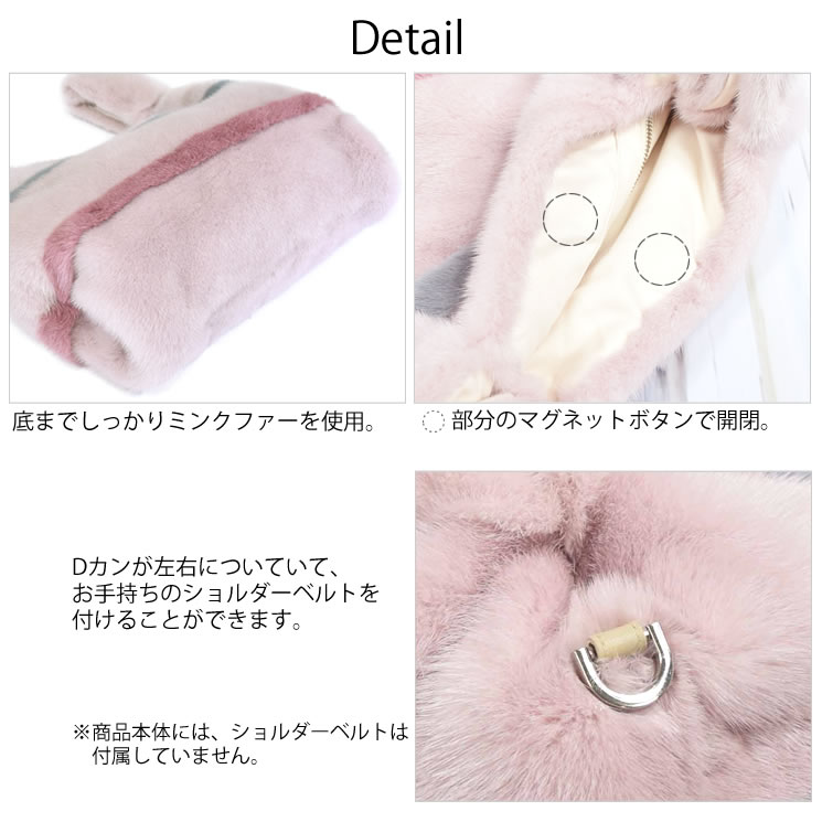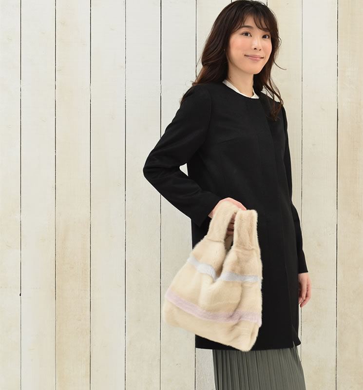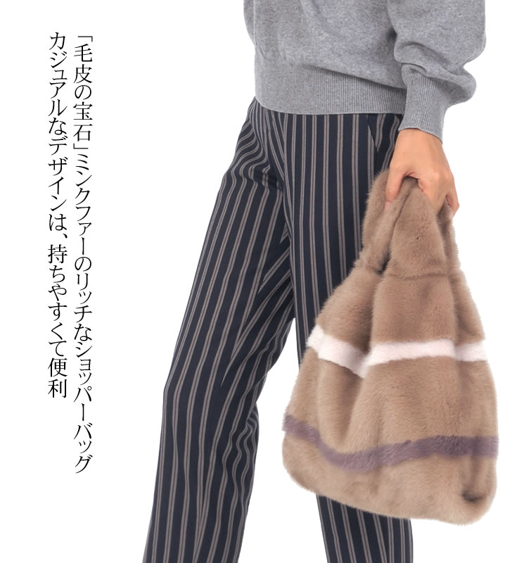 「毛皮の宝石」ミンクファーを使用したリッチなショッパーバッグ。カジュアルなショップバッグ型のデザインは、持ちやすくて便利。シンプルなデザインは、フェミニンやカジュアルなど印象の異なるスタイルでも違和感なく馴染みますファーは、高級毛皮ミンクを使っているので高級感があり、大人の女性ににぴったり。普段の何気ないコーデに取り入れることでグンと印象を華やかにアップしてくれるファーバッグです。