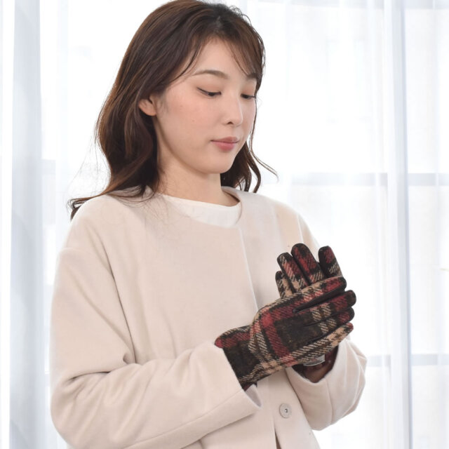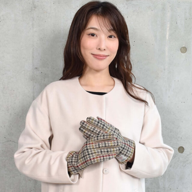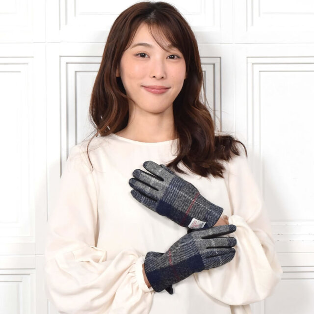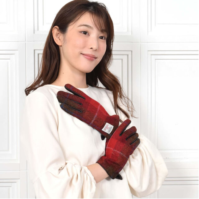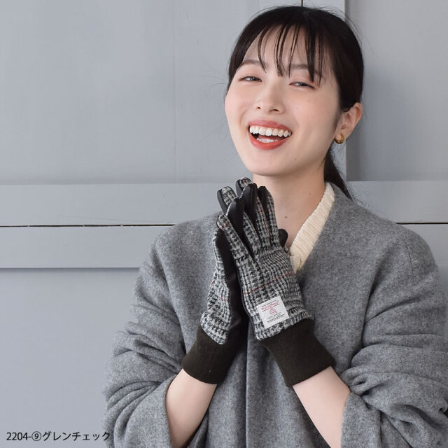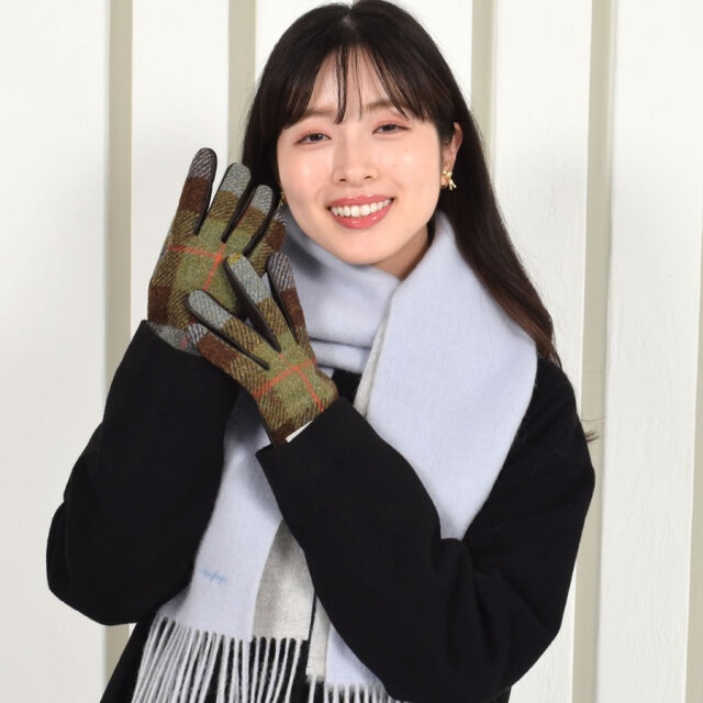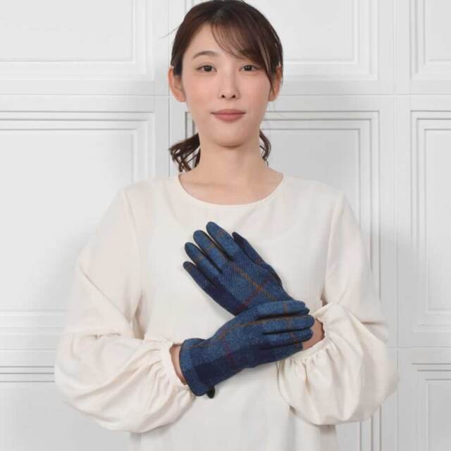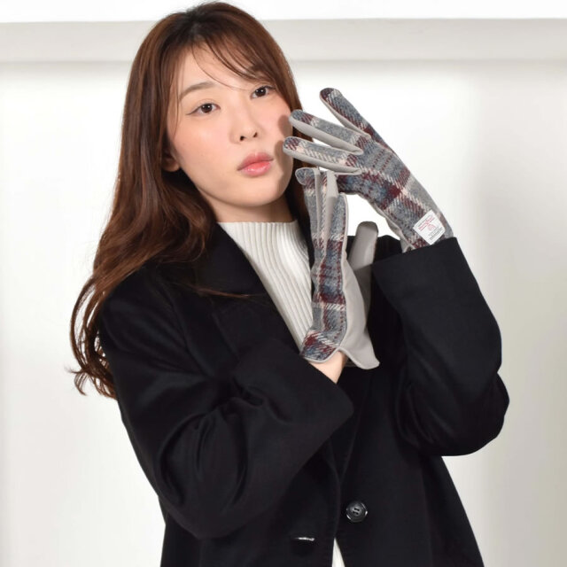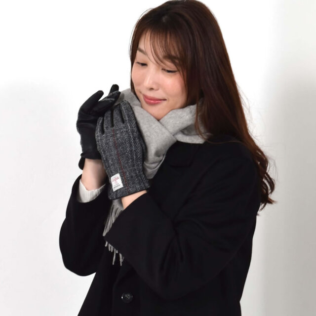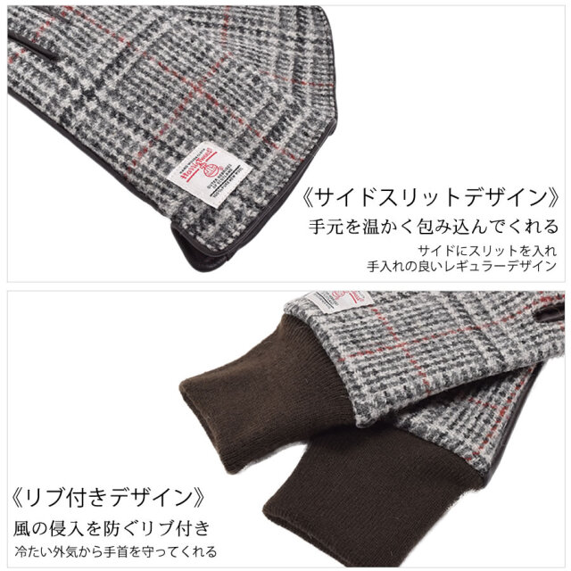 スコットランドのアウターヘイブリディーズ諸島のハリス地方で伝統職人の手によって織られたツイード生地を使用した手袋。スッキリとしたフォルムの立体裁断で手に馴染むように職人がこだわった丁寧な仕上がり。手のひら側には軽くて柔らかなフィット感の上質のラムスキンを使用。内側は毛足の長いベルベット裏地で柔らかく滑らかな肌触り。手のひらのレザー側には全面タッチパネル加工が施されているのでスマホ、タブレットなど寒い中でも着用したまま使用することができます。サイドスリットデザインとリブ付きデザインの2種類。通勤通学から休日のカジュアルスタイルにも合わせやすいデザインで人気のアイテムです。