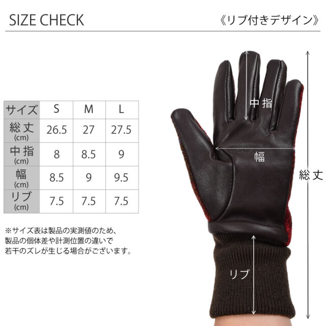 【L】総丈約27.5cm 中指約9cm 幅約9.5cm リブ約7.5cm (レディースの手の大きい方)