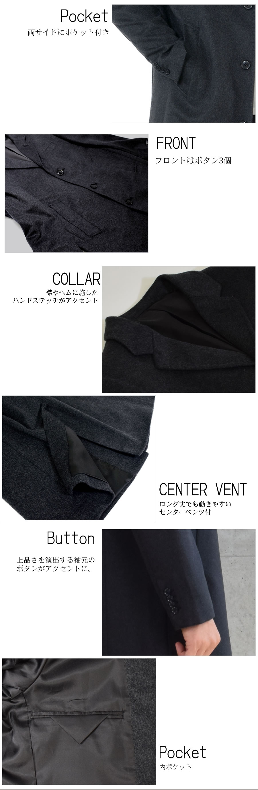 カシミヤ100%生地を使用した定番のチェスターコート。しなやかで ソフトな肌触りと美しい光沢で落ち着いた雰囲気が漂う。ON/OFFに対応でき、マフラーを巻いたり、ジャケットの上からはもちろんニットやモックネックの上に着ても今シーズンらしさを表現していただけます。柔らかな肌触りが心地良いシンプルなカシミヤ100%チェスターコートをあえて軽快にスポーティーに着こなすもの◎。