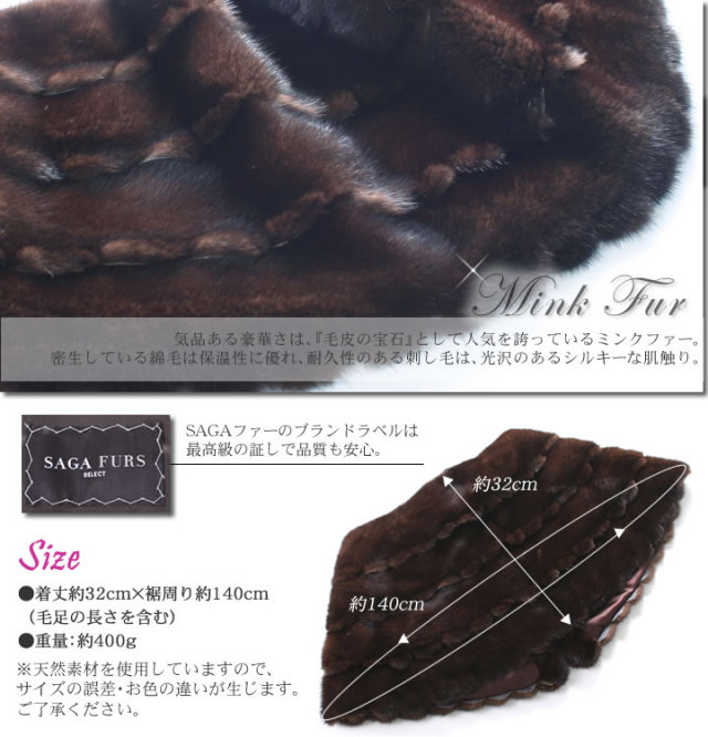 | 素材 | 毛皮:ミンク 裏地:ポリエステル100% |