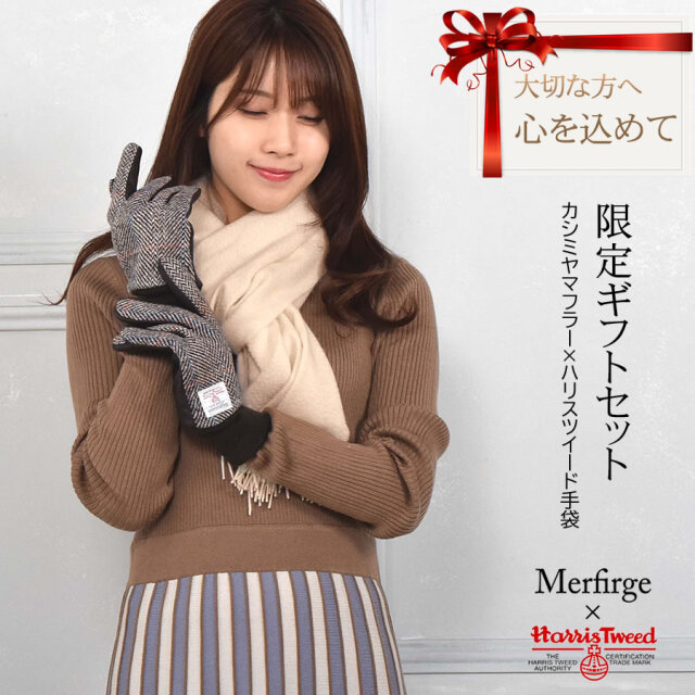 毎年人気のカシミヤ100%マフラーとハリスツイードの手袋が今年も限定ギフトセットになって登場!!