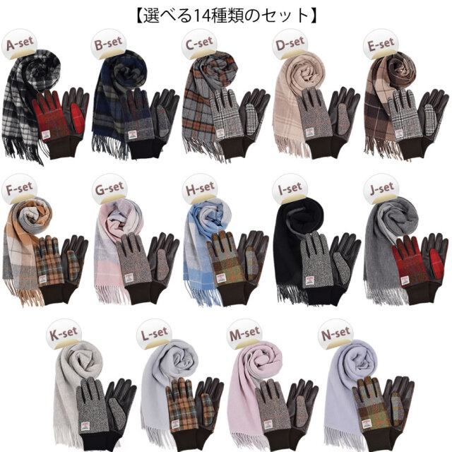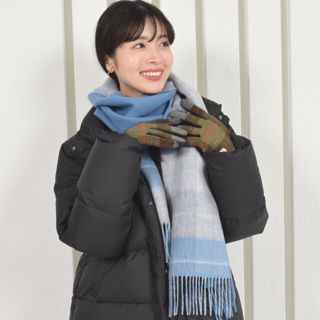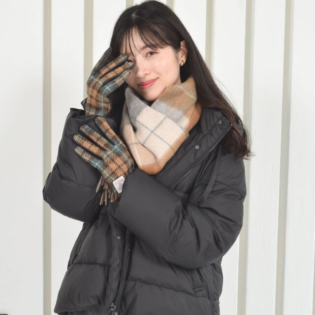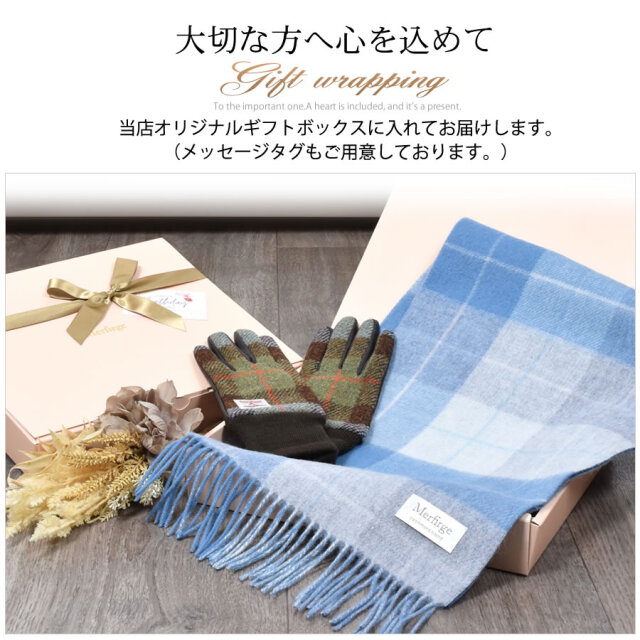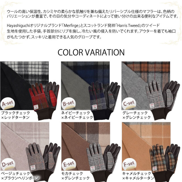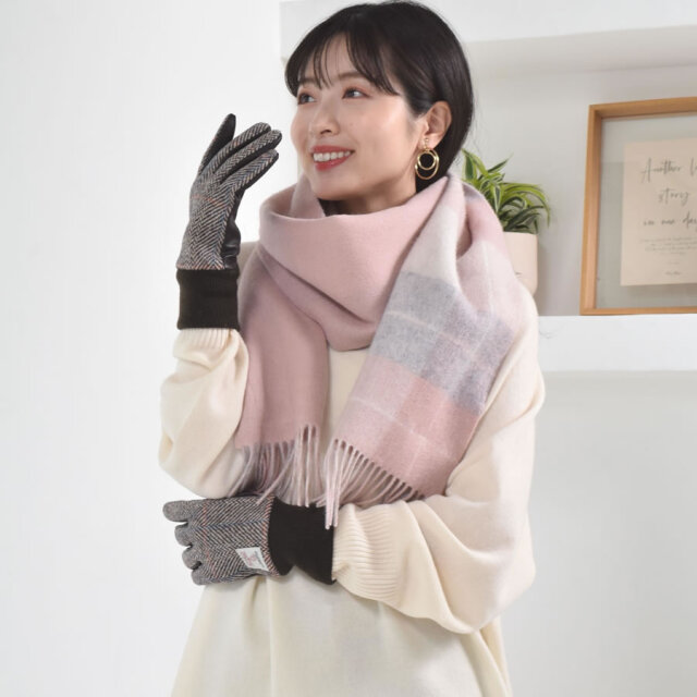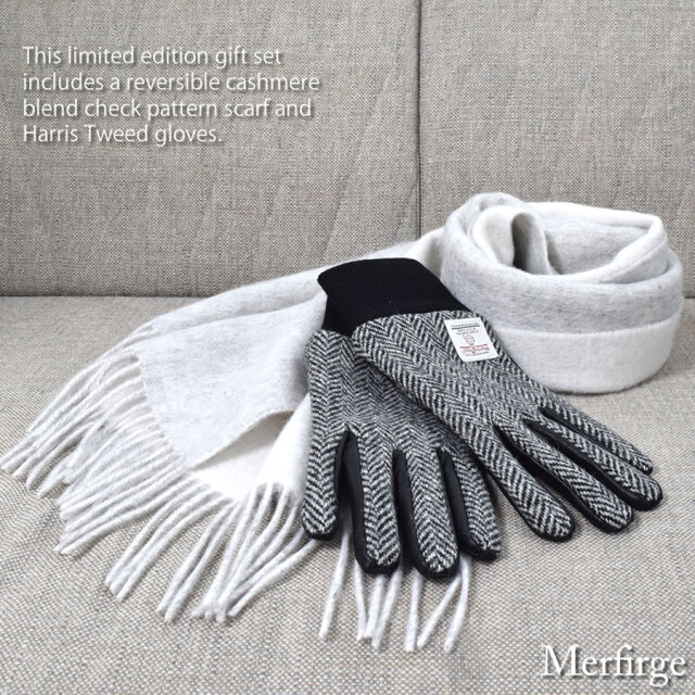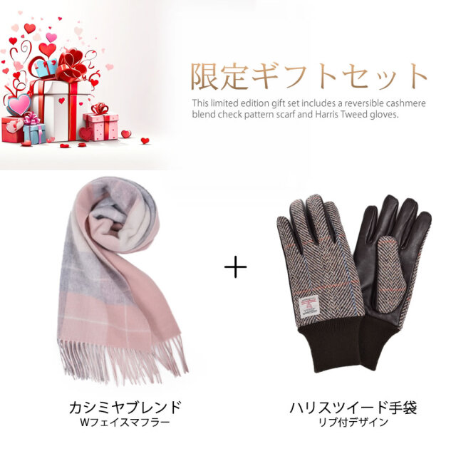 カシミヤブレンドリバーシブルマフラーとハリスツイード手袋がオリジナルギフトセットになって登場!!