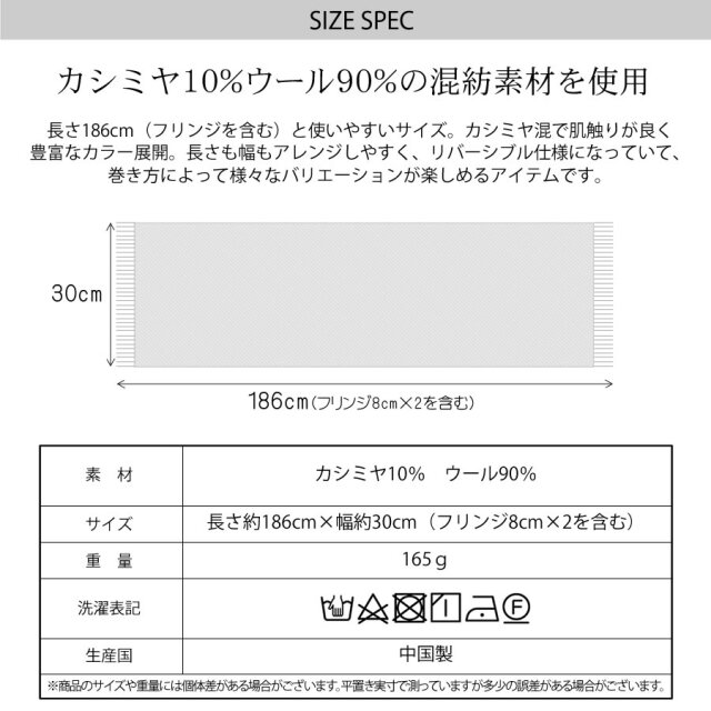 長さ約186cm×幅約30cm(フリンジの長さを含む)