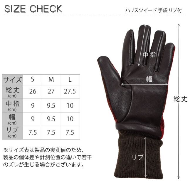 【S】総丈約26.5cm 中指約8cm 幅約8.5cm リブ約7.5cm ※手の小さい方
