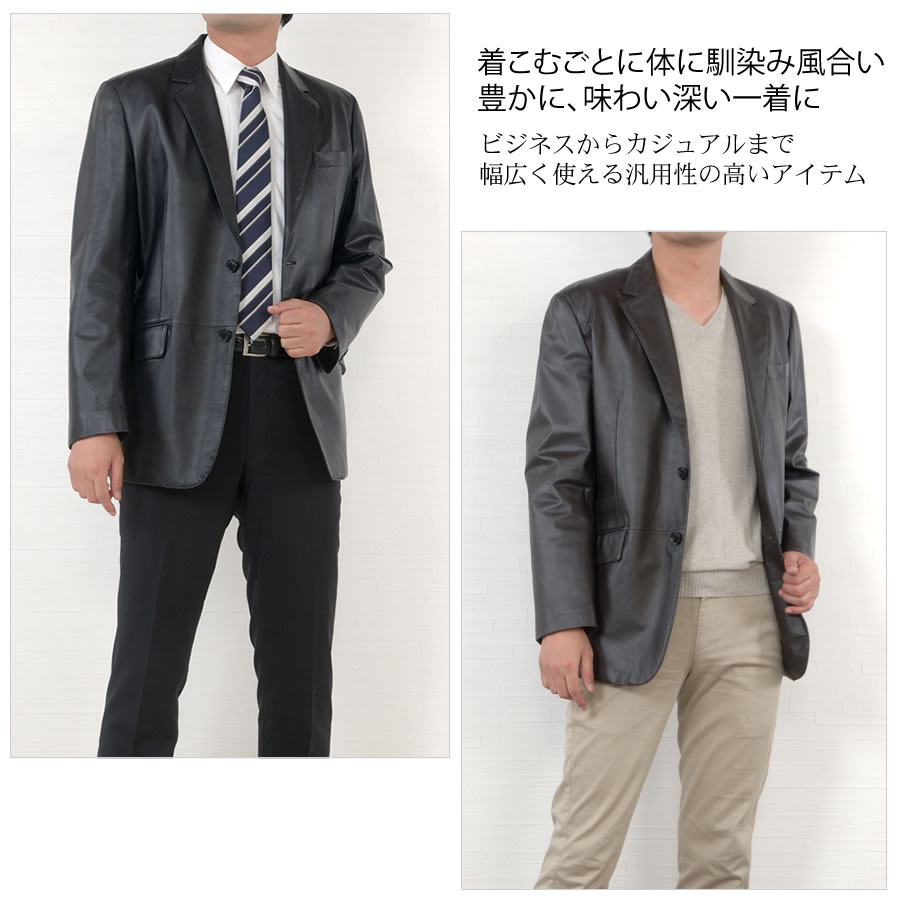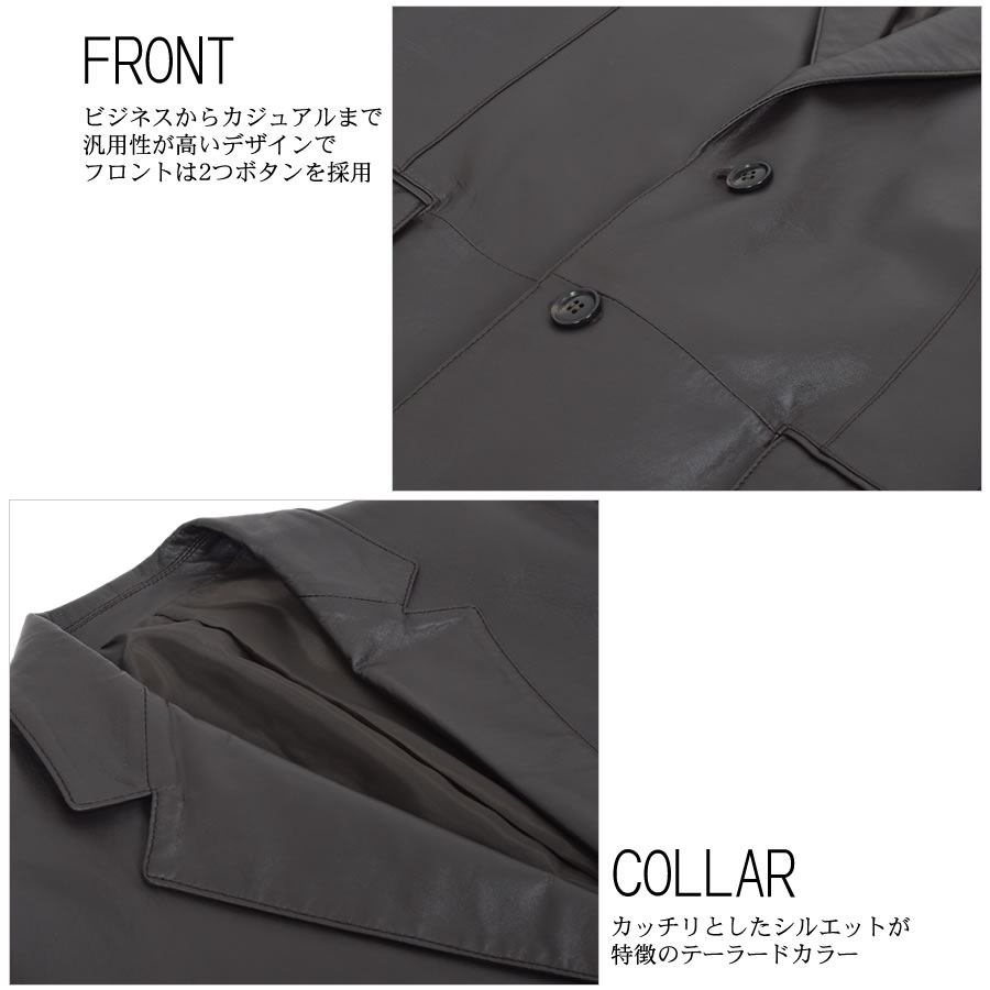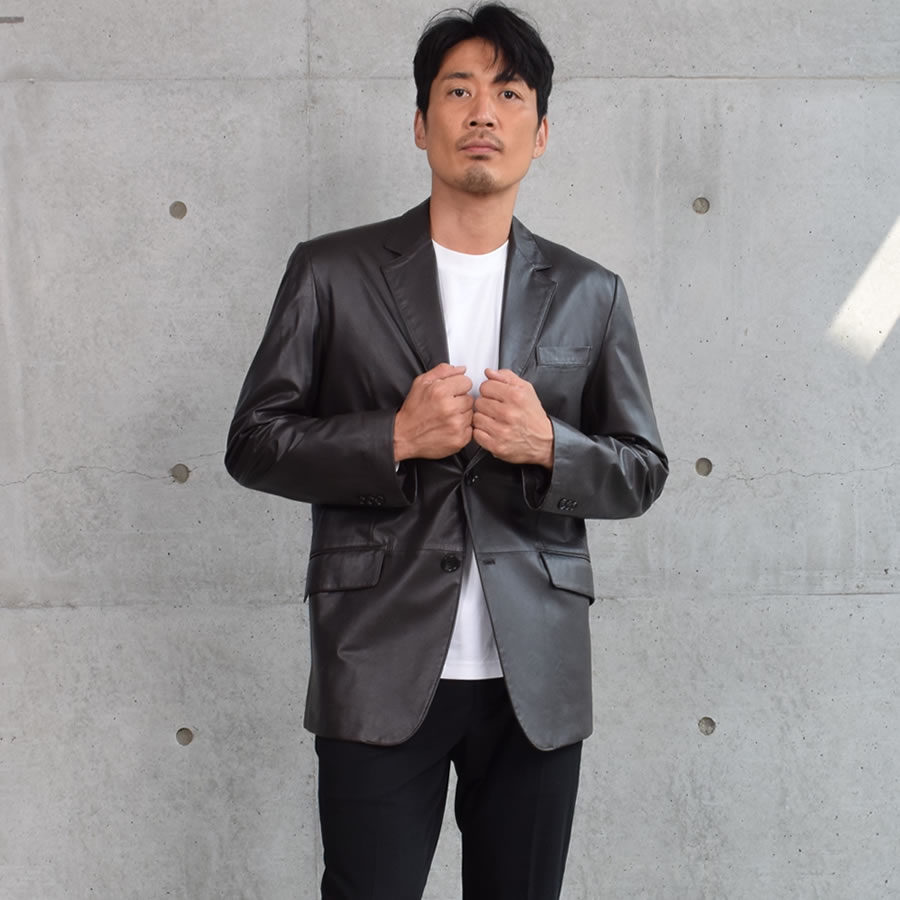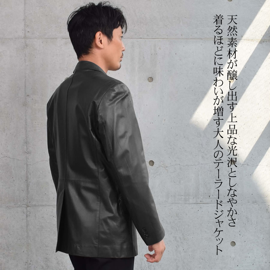 個性が刻み込まれていく大人のラムレザーのテーラードジャケット。清潔感とシンプルさを出すためのミニマルデザイン。男らしいデザインながら、華美でなくスッキリとした印象に仕上げました。薄く、軽く、質感の良い素材で サッと羽織るだけでサマになる。ベーシックなデザインのシングルジャケットは、着こなしやすく、着るほどに風合いが増していきます。デニムからスラックスまで幅広くコーディネートできる優れモノです。