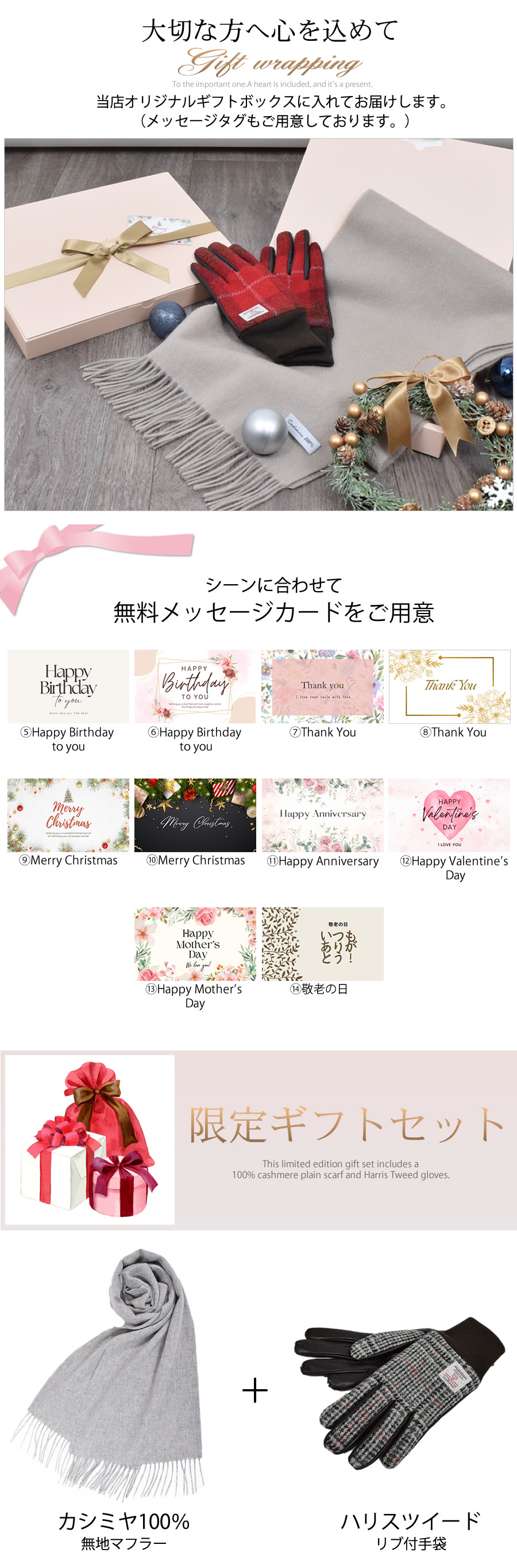 毎年人気のカシミヤ100%マフラーとハリスツイードの手袋が今年も限定ギフトセットになって登場!!